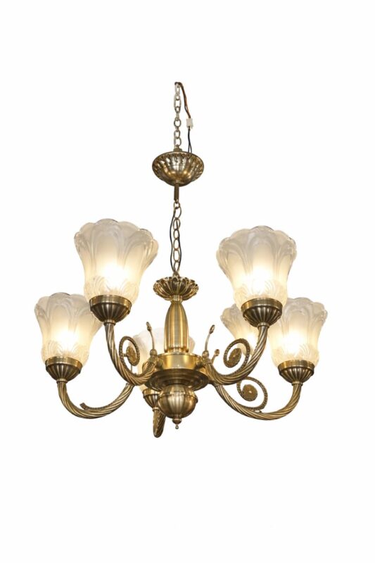 Classic Elegance Antique Brass Chandelier with Frosted Glass Shades