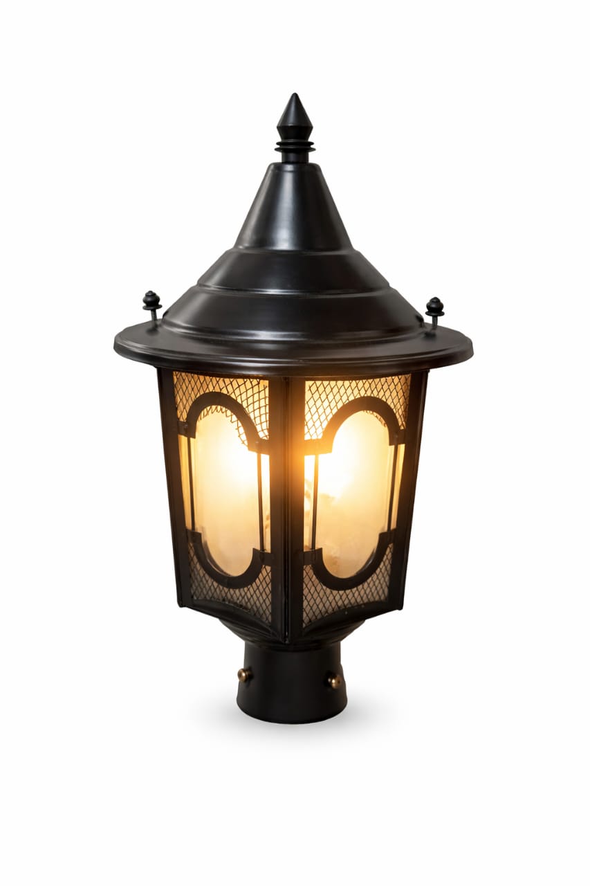 Enhance your outdoor spaces with the timeless charm of this classic black outdoor garden pillar lantern. Designed with a durable metal frame and decorative mesh panels, it casts a warm, inviting glow that beautifully illuminates pathways, patios, and garden landscapes.